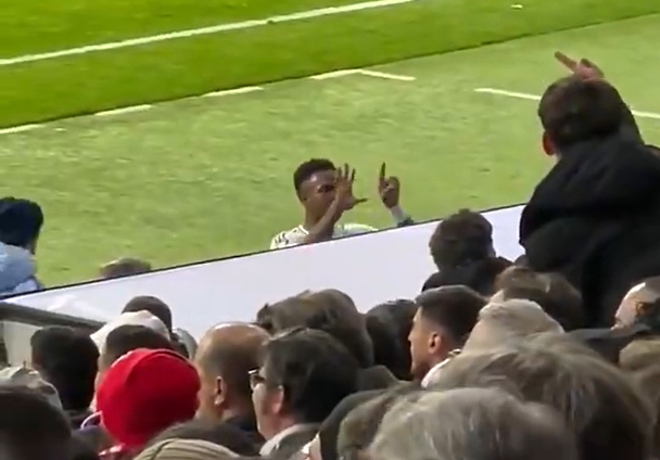维尼修斯比出"15-0" 马竞球迷竖中指&做"爱哭鬼"手势