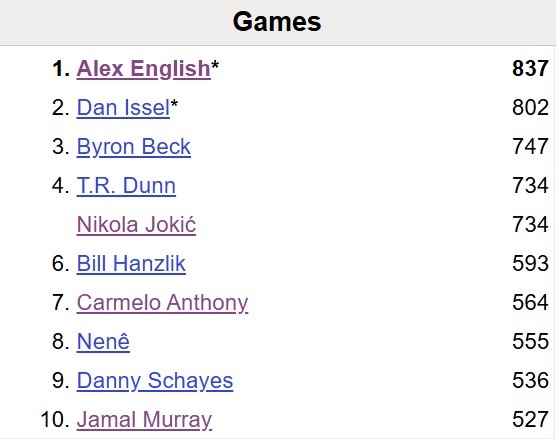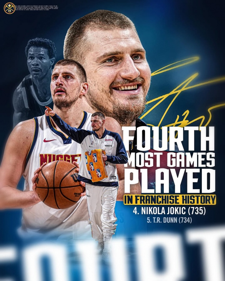 2025-03-13 14:14:46约基奇出战场次超越T.R-邓恩 上升至掘金队史第四位