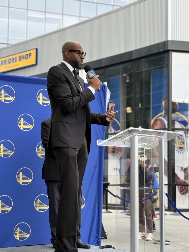 安德烈加盟勇士,从很多方面来说,真正开启了这个伟大的王朝。就像拼图一样,每支伟大的球队都是一个拼图,而你就是那块关键的拼图。在我们看来,你的加盟是这支球队能取得如此辉煌成就的关键原因之一。因此,今天为你举办这个仪式,意义重大。
