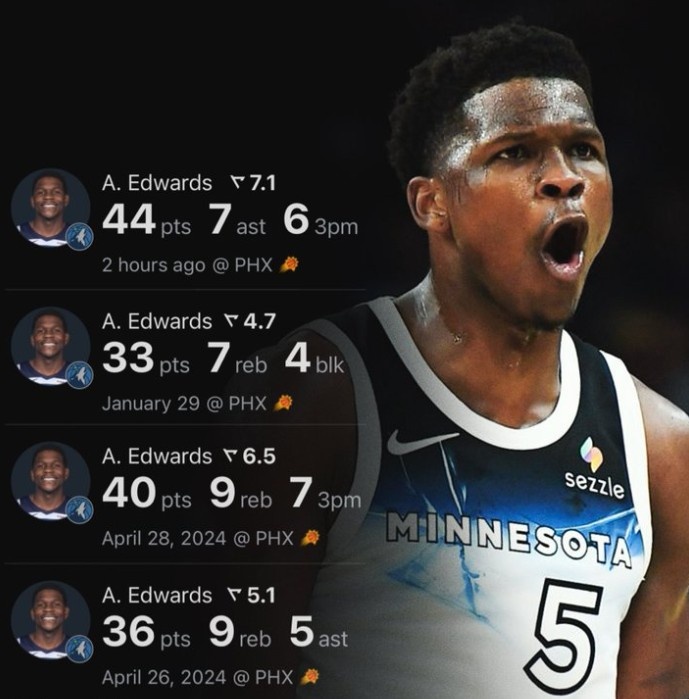 2025-03-03 18:27:33狠人!爱德华兹过去4场打太阳场均38.3分7.5板5.8助 命中率55%