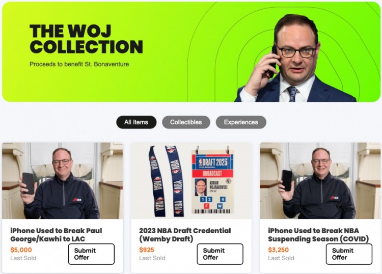 为了筹集资金支持他目前任职的圣文德大学男子篮球队,沃神将他体育媒体职业生涯中的多个重要时刻,在拍卖网站「PutABounty」上一一列出,开启了一场个人物品大甩卖,拍品包括: