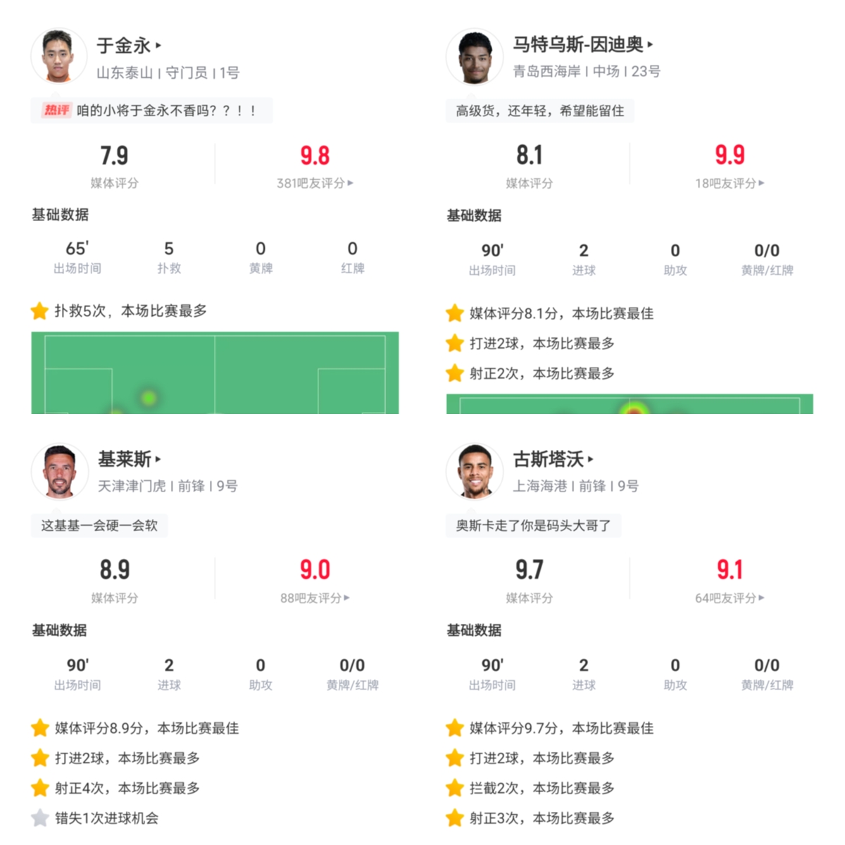2025-02-24 18:01:08【直播吧】中超首轮最佳球员:于金永险胜,得票率仅多基莱斯1.7%