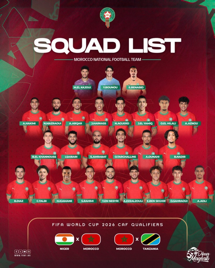 2025-03-14 20:58:00摩洛哥名单:阿什拉夫、马兹拉维、布拉欣-迪亚斯、恩-内斯里在列
