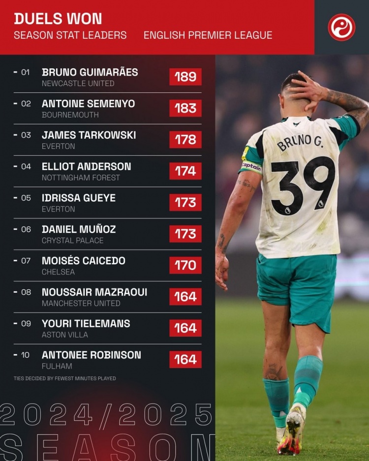 2025-03-18 13:10:12本赛季英超成功对抗榜:吉马良斯居首,凯塞多、马兹拉维在列