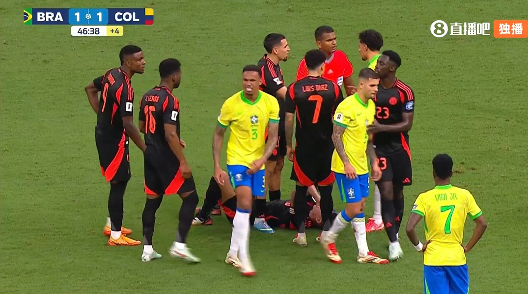 2025-03-22 06:04:18半场-拉菲尼亚点射维尼修斯造点迪亚斯扳平 巴西1-1哥伦比亚