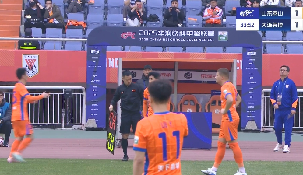2025-02-28 18:00:27半场-克雷桑破门卡兰加头槌+蹬踏染红毛伟杰送助攻 泰山暂1-1英博