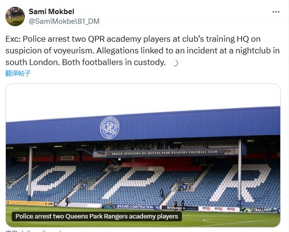 2025-02-28 18:01:34邮报:英冠QPR两名球员训练时被警方带走,涉嫌偷窥罪