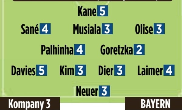 2025-03-01 12:25:57图片报赛后评分:凯恩&戴维斯5分最差,格雷茨卡&科曼2分最佳