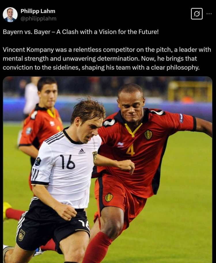 拉姆写道:拜仁对阵勒沃库森,这是一场未来愿景之间的较量!在球场上,孔帕尼是一位不屈不挠的斗士,一位拥有强大精神力量和坚定决心的领袖。现在,他将这种信念带到了教练席,正在用清晰的理念塑造他的球队。