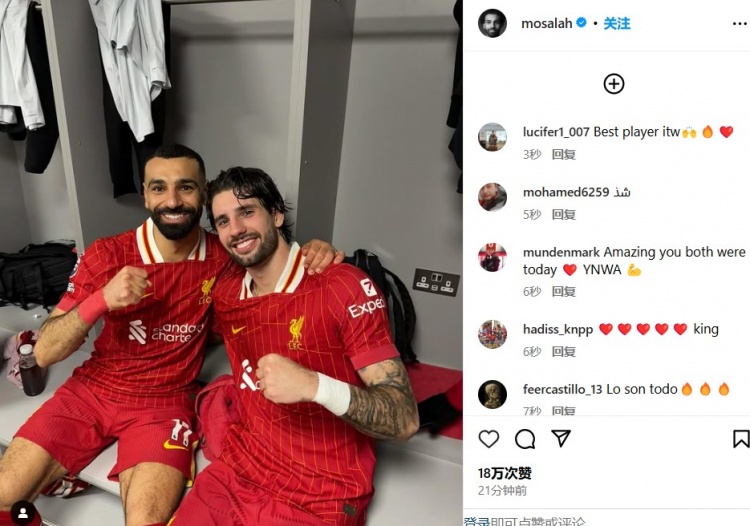 2025-02-24 12:15:27赛后日常环节!萨拉赫社媒分享和索博斯洛伊在更衣室合照
